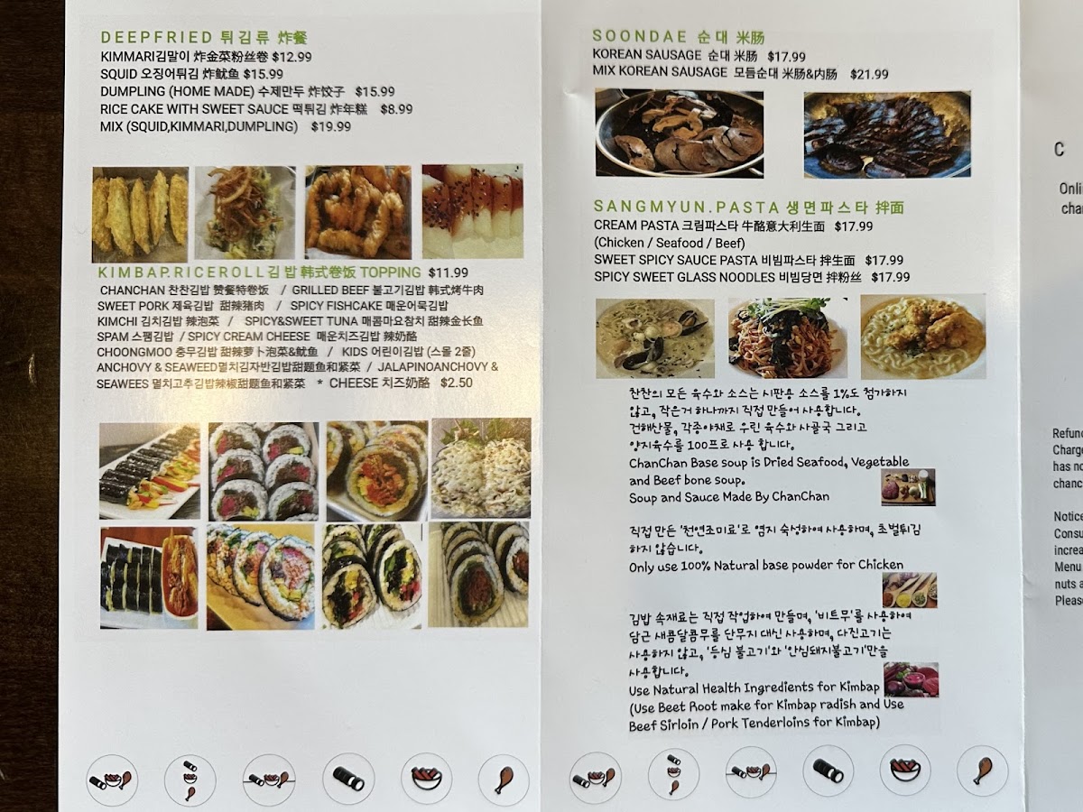 Rice roll with a choice of fillings including grilled beef, Spam, spicy sweet tuna, and spicy fish cake.